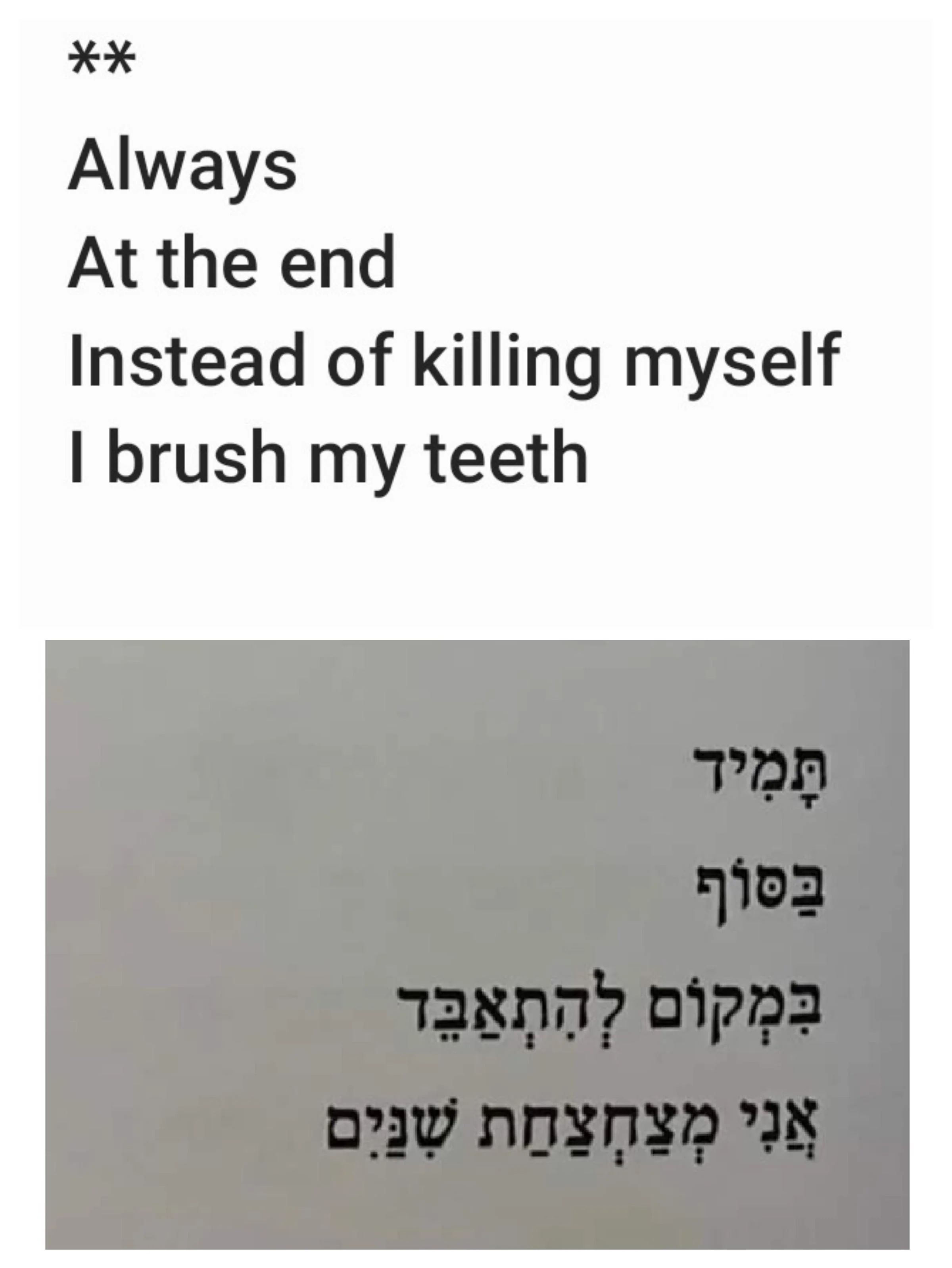 Always At the end Instead of killing myself I brush my teeth